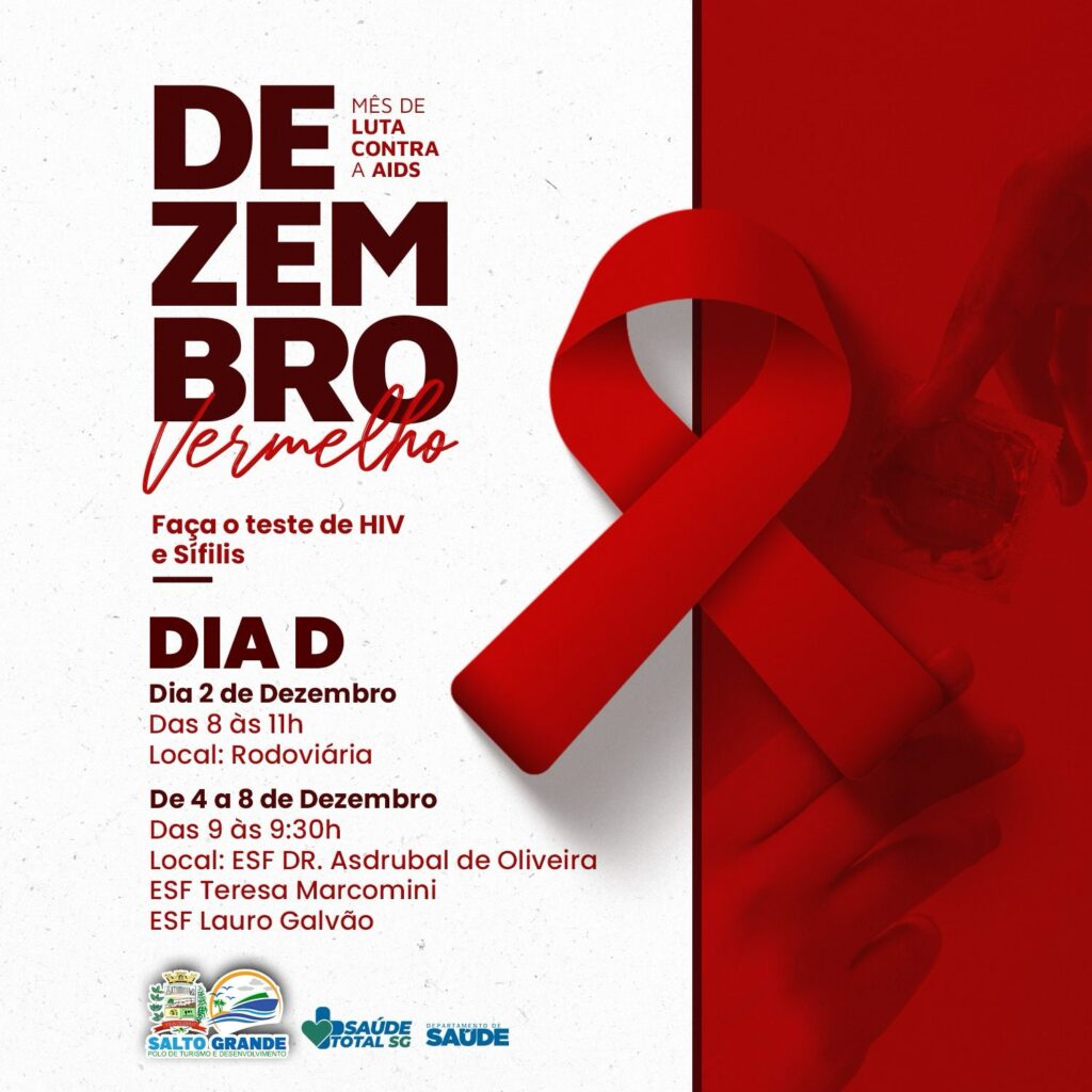 De 4 a 8 de dezembro, os ESFs Dr. Asdrubal de Oliveira, Teresa Marcomini e Lauro Galvão estarão oferecendo testes gratuitos de HIV e sífilis à população das 9h às 9h30. Cuidar da sua saúde é essencial, e estamos aqui para tornar esse processo mais acessível. Além disso, no sábado, dia 2/12, realizaremos o “Dia […]