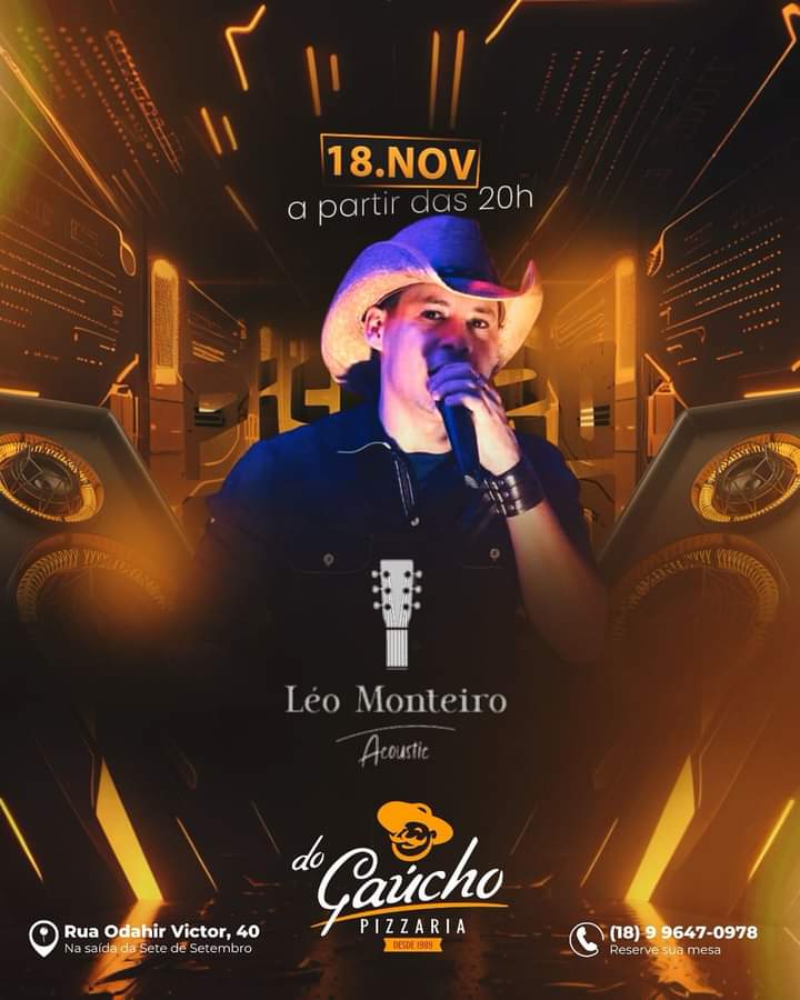 Sabadão dia 18 de Novembro 2023. Léo Monteiro na Pizzaria do Gaúcho em Palmital SP às 20hs.