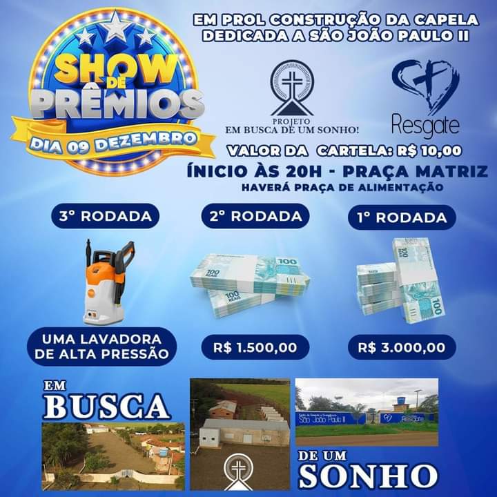 Vem aí Show de Prêmios em prol construção da Capela em Ibirarema.