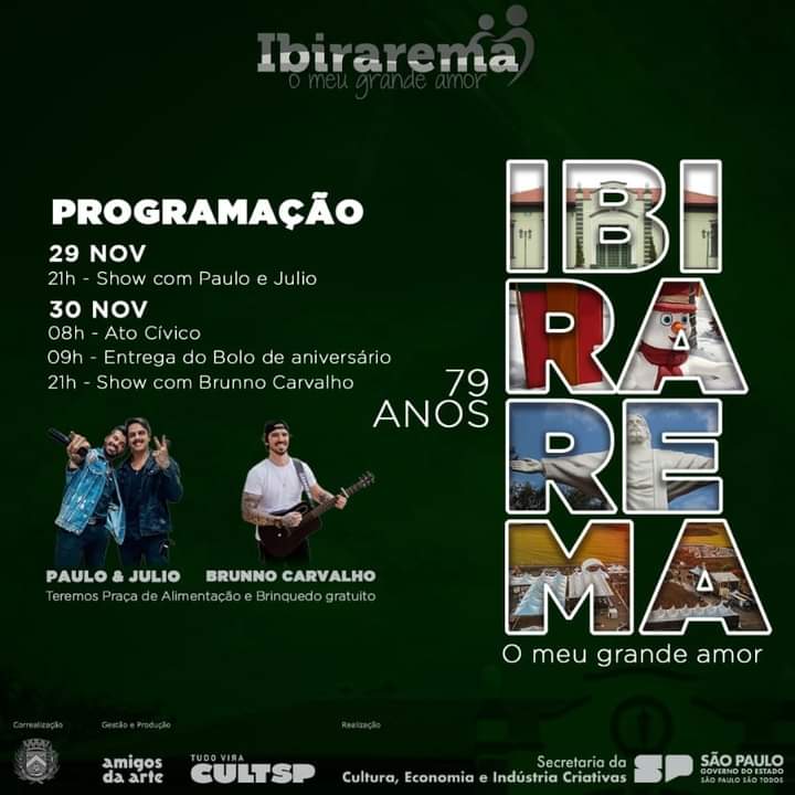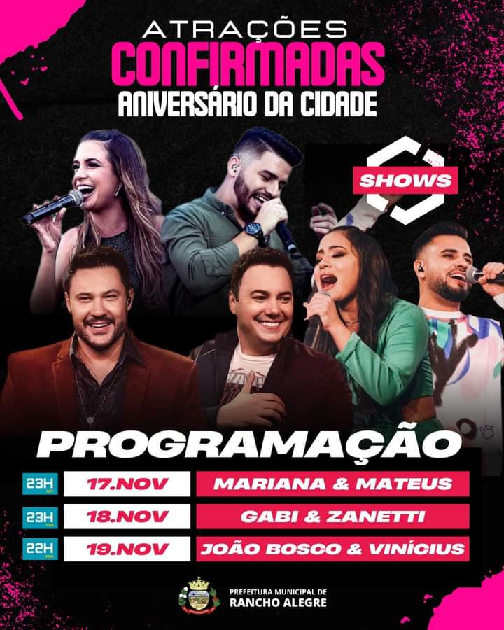 Programação Musical do Aniversário de Rancho Alegre PR. Novembro de 2023