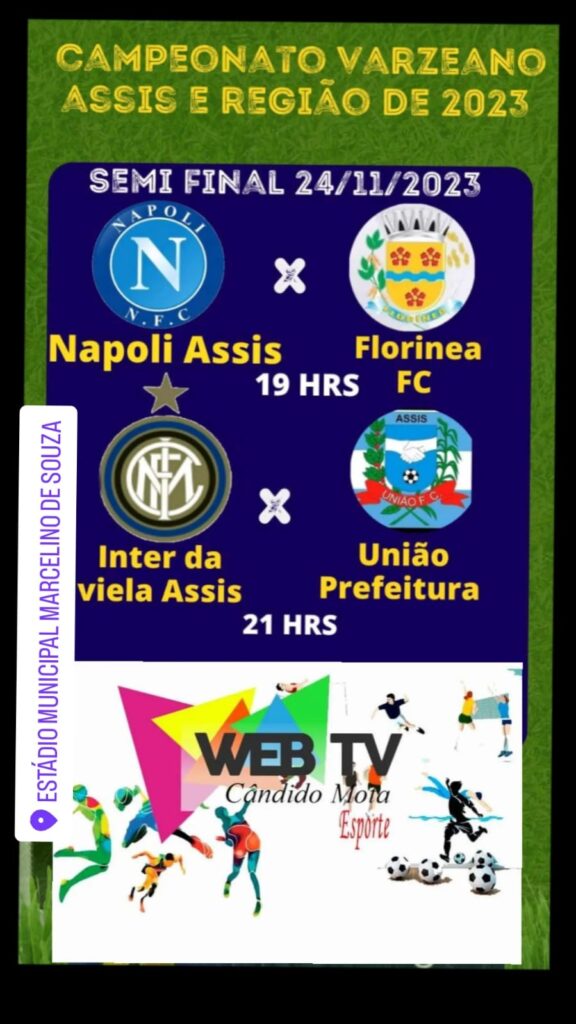 Napoli Assis 1×0 Florinea e Inter Viela 2×1 União Prefeitura. Próximo sábado dia 2 de Dezembro 2023 às 16 horas Grande Final Napoli Assis X Inter Viela no Estádio Marcelino de Sousa em Assis SP.