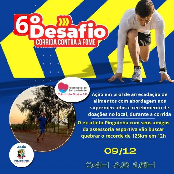 Vem aí mais uma vez desafio corrida contra fome em Cândido Mota SP dia 9 de Dezembro 2023.