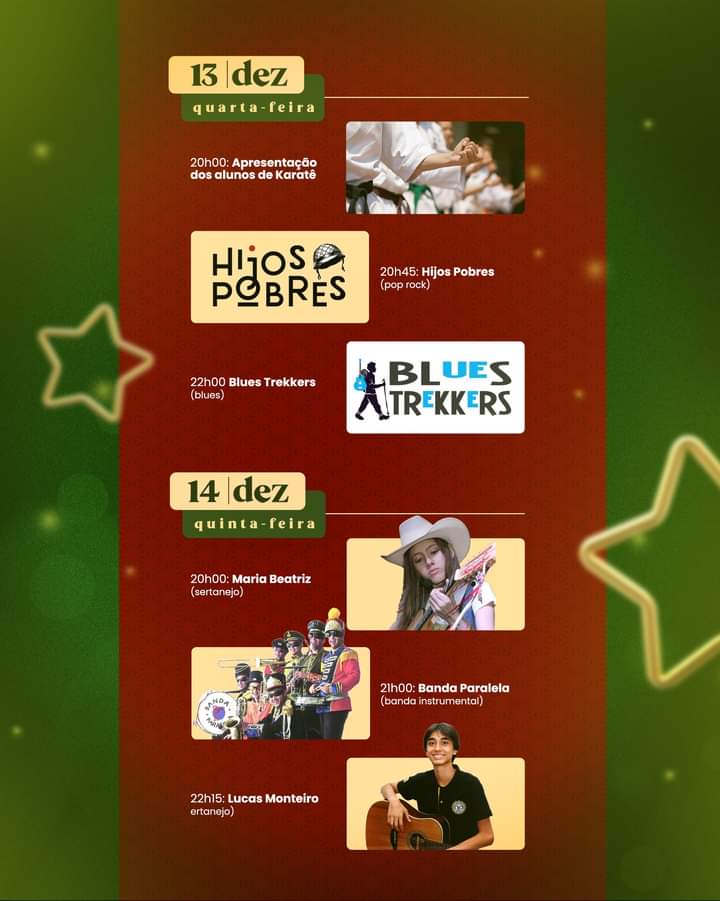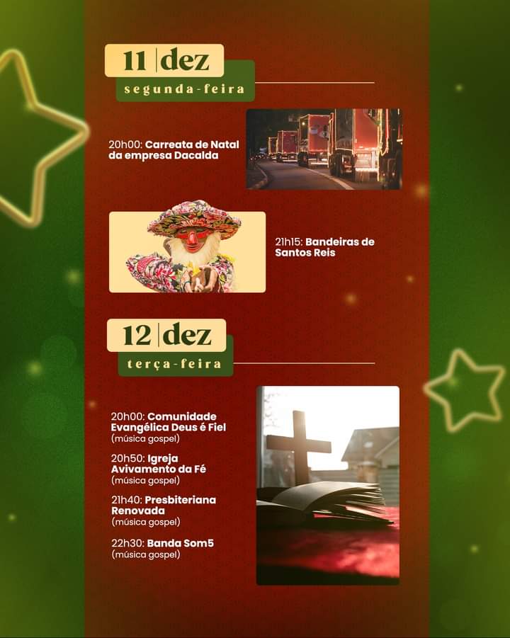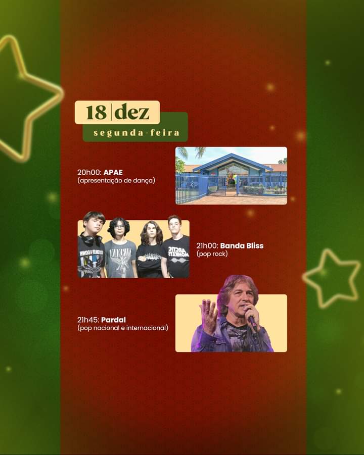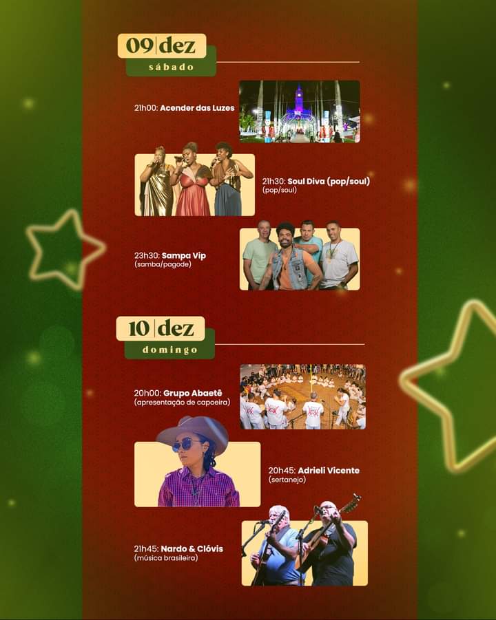 Neste sábado, dia 09, a Praça da Matriz se ilumina para celebrar o espírito natalino em grande estilo. O acender das luzes marca o início dessa festa encantadora, que promete unir a comunidade em um clima de paz e alegria.