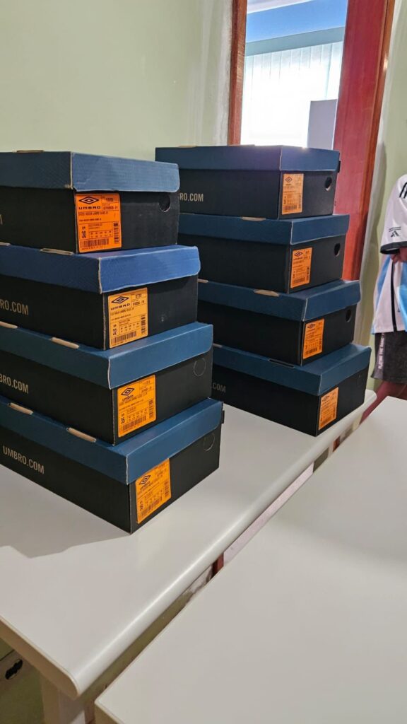 A gestão do Prefeito Mário Rosa demonstra comprometimento com o desenvolvimento integral da juventude ao proporcionar chuteiras para os participantes da atividade esportiva, garantindo que possam treinar de forma adequada e equitativa.
